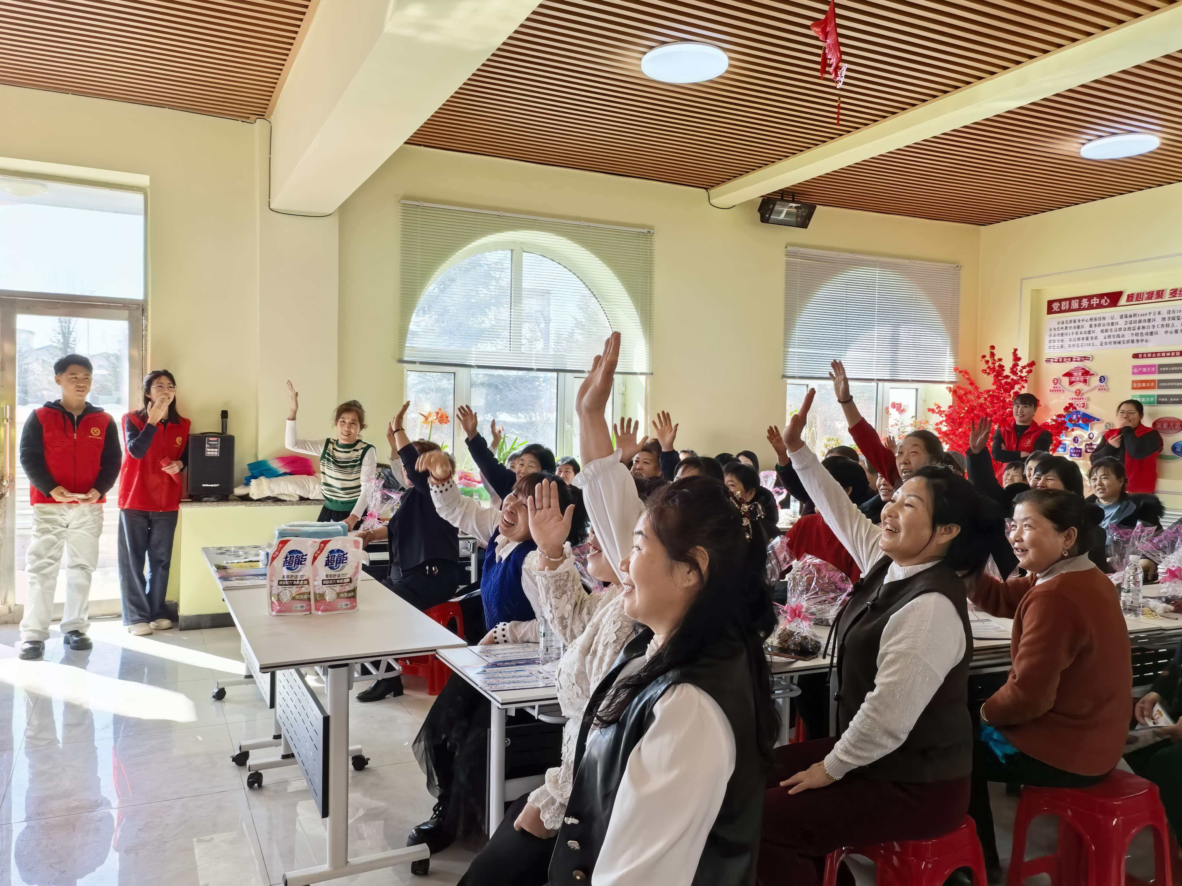 活动融合法治宣传、健康服务、绿色交换与温情关怀等多个维度,为社区及宽沟村、永胜村、菜营村妇女带来了丰富实用的惠民服务。法律志愿者们通过“法护芳华”微讲座与有奖互动答题,聚焦妇女权益保护与反诈知识普及,切实增强了妇女群众的依法维权意识。健康互动环节,志愿者带领群众共同学习康养手势舞,在律动中舒心解压,展现积极风貌。“绿意交换”成为活动现场的温馨亮点,巾帼志愿者们巧手制作多肉盆栽,乡村妇女代表则赠送出自家的菜种和花种。这场城乡间的“绿色接力”,不仅交换了春日的希望,更加深了彼此之间的情谊。市中医院的健康讲堂与巧手制香囊活动,则将专业养生知识与亲手制作的健康祝福送到妇女身边。活动最后,志愿者们组成慰问小分队,携带活动中制作的香囊、绿植及法律、健康宣传资料,上门走访看望了社区和村内行动不便、独居的女性长者,为她们提供简易健康检查、用药咨询,并送上节日的暖心陪伴。