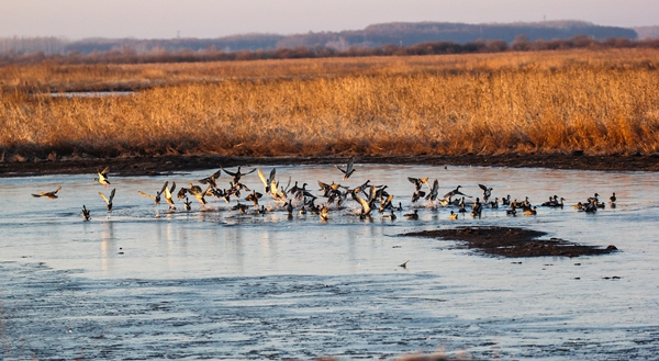 人民网哈尔滨4月2日电 春回大地,龙江森工林区冰雪渐融,首批长途迁徙的北归候鸟已悄然抵达。近日,在龙江森工集团所属海浪河畔、南北河湿地、丰林国家级自然保护区等施业区内逐渐融化的水域、林间、湿地内,成群的大雁、野鸭、苍鹭、白鹭等候鸟嬉戏觅食,标志着候鸟迁徙季正式开启。