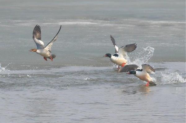 候鸟北归的序曲,由一群“生态检验员”率先奏响。国家一级保护动物、素有“鸟中大熊猫”之称的中华秋沙鸭已率先抵达大海林林区海浪河流域。它们或在河面上梳理羽毛,或扎入水中捕食鱼虾,灵动身影成为海浪河畔最亮眼的风景。