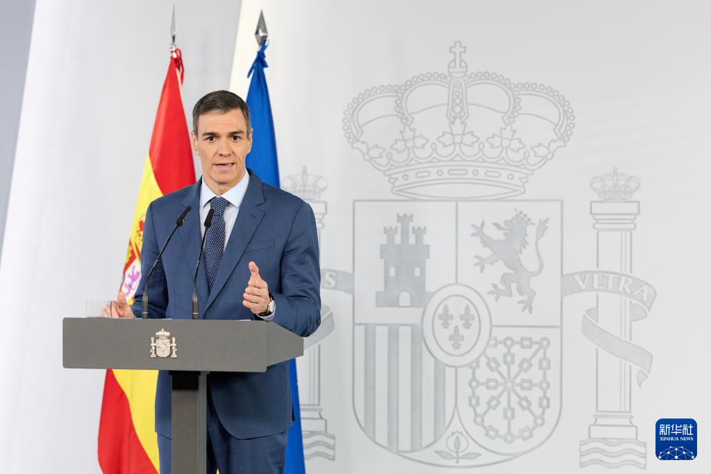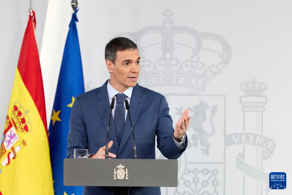 3月20日,西班牙首相佩德罗·桑切斯在西班牙马德里参加新闻发布会。新华社记者 孟鼎博 摄
