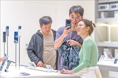陕西省西安市雁塔区一家商场内,消费者正在选购手机。 |
