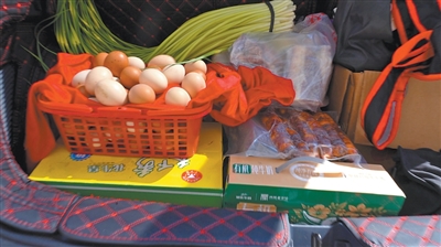 2月23日,四川雅安汉源县城,市民李女士的母亲(左)正往后备箱里装家乡特产。 |