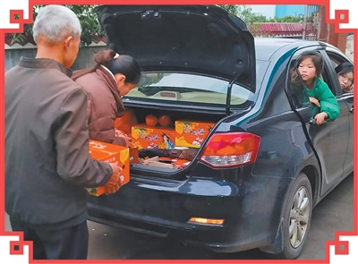 2月22日,江苏连云港灌南县田楼镇茂兴村,在苏州务工的许红祥(中)即将返程,母亲将家乡特产塞满后备箱。 |