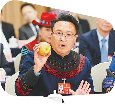 “老鲁呀,在场这么多人,你带两个苹果可不够!”会场上,有代表开玩笑,逗得大家噗嗤一笑。